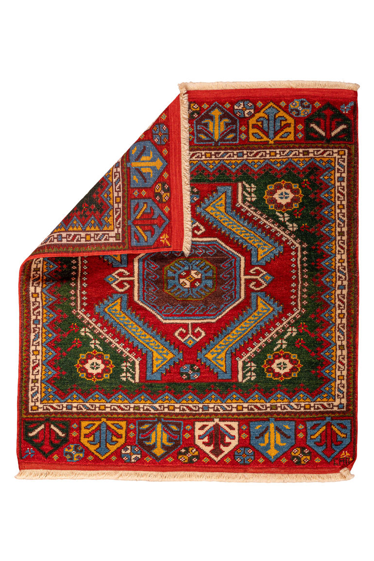 Konya Karapınar Knotted Rug - With dimensions of 1.04m x 0.92m- and 0.95 square meters in total. Approximately 0.8 cm thick, each rug is handwoven using 100% hand-spun wool—commonly known as Kirman yarn—and dyed exclusively with natural pigments. Each piece features 90,000 to 140,000 knots per square meter, depending on the complexity of the pattern.Sunlight, bleach, even the weight of a car—These rugs withstand it all without fading, tearing, or losing their soul. They’re not just rugs.They’re enduring works of art—woven to last, made to live with you.