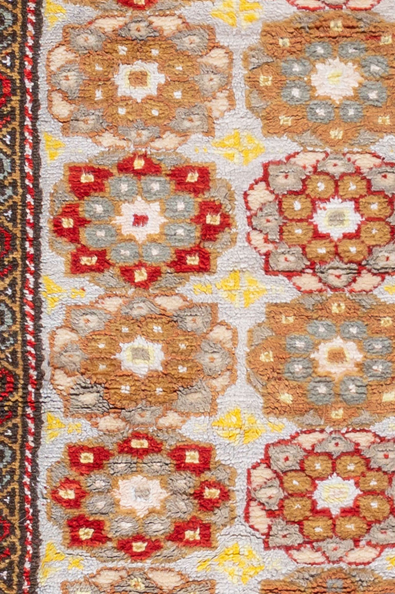 Sivas Pattern Knotted Rug - With dimensions of 1.48m x 0.67m- and 0.99 square meters in total. Approximately 0.8 cm thick, each rug is handwoven using 100% hand-spun wool—commonly known as Kirman yarn—and dyed exclusively with natural pigments. Each piece features 90,000 to 140,000 knots per square meter, depending on the complexity of the pattern.Sunlight, bleach, even the weight of a car—These rugs withstand it all without fading, tearing, or losing their soul. They’re not just rugs.They’re enduring works of art—woven to last, made to live with you.